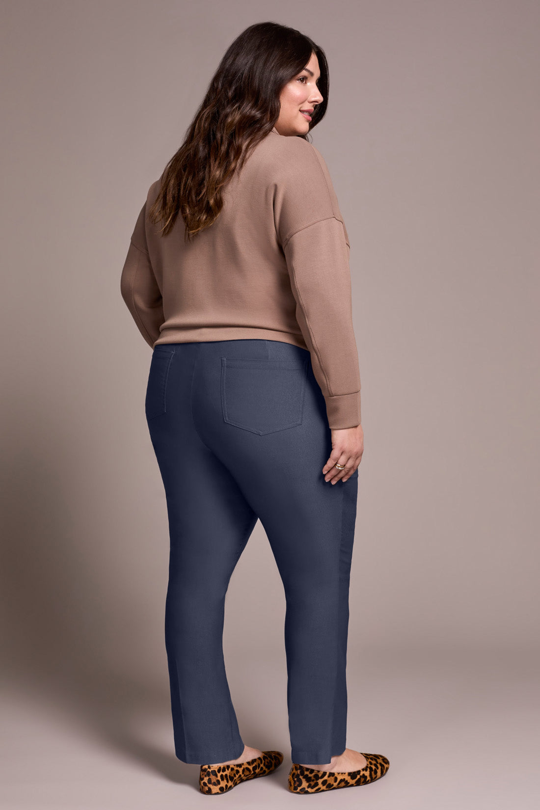 Enhance your silhouette in these sleek slim boot-leg pants. designed with a pull-on waistband featuring FLATTEN IT® technology for comfortable support and a smooth fit. The stretch bengaline twill fabric offers effortless flexibility. while square pockets add a touch of practical style.